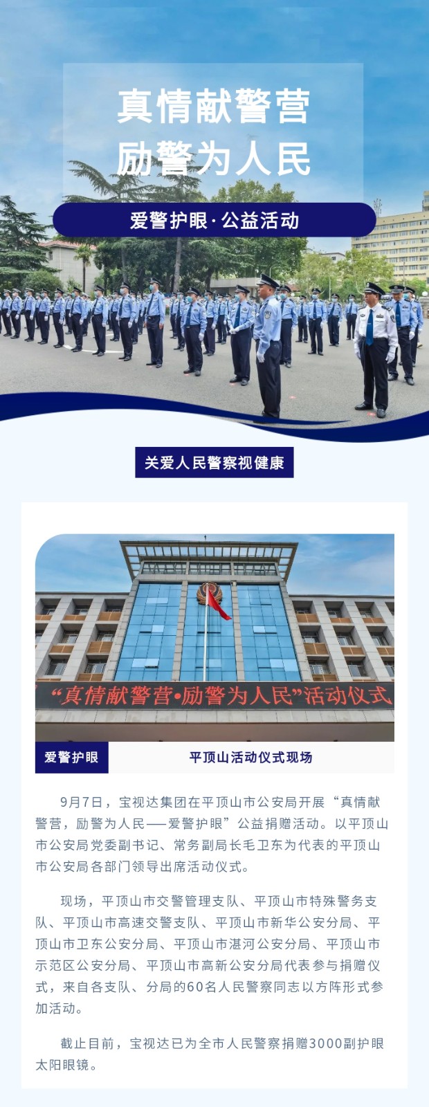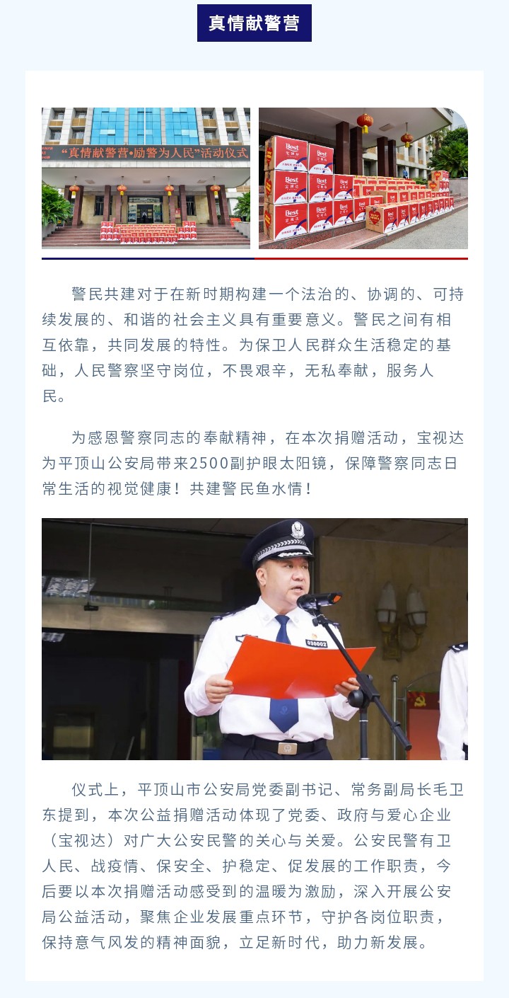 茄子视频更懂你的APP为平顶山市公安民警捐赠3000副太阳镜!